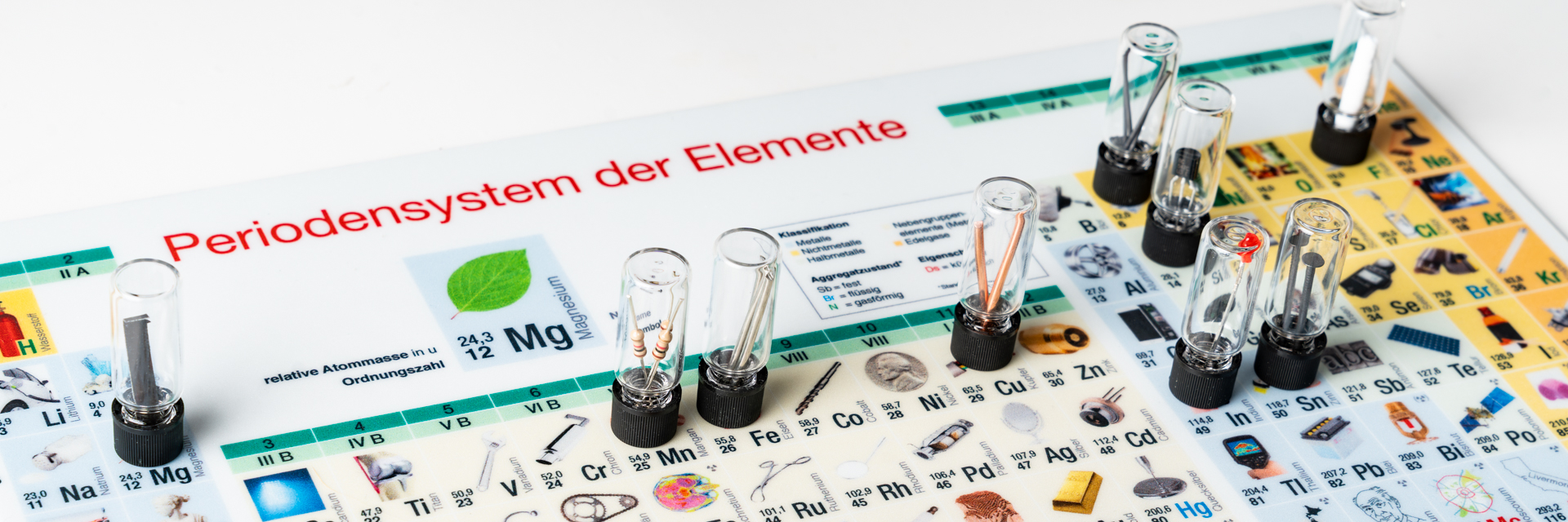 Die Schwebeschienentafel des Periodensystems der Elemente gibt einen ansprechenden Überblick zu jedem Element und seinen wichtigsten Daten. Die aktuellen IUPAC-Empfehlungen zu den Integralen für die relativen Standard-Atommassen und die neu benannten Elemente 113 Nihonium (Nh), 115 Moscovium (Mc), 117 Tennessine (Ts) und 118 Oganesson (Og) sind integriert. Das neuartige Konzept zur Darstellung des Periodensystems der Elemente, auf Basis eines flexiblen Hängeschienensystems, ermöglicht die separate Darstellung der Haupt- und Nebengruppen (siehe Abb.). Optional ist das Schwebeschienensystem um eine dritte Ebene mit Whiteboardtafel erweiterbar (alle Werte verdeckt). Das Whiteboard ist beschreibbar, abwischbar und magnetisch. Sowohl bei der Voll- als auch bei der Kurzversion (A + B) werden die Aggregatzustände, Haupt- und Nebengruppenelemente, Metalle, Nichtmetalle, Halbmetalle und Edelgase durch eine unterschiedliche Farbgebung gekennzeichnet. Durch die gewählte Darstellungsgröße und hervorragende Druckqualität sind die Symbole und Zahlen auch bei größerem Betrachtungsabstand gut lesbar. Die helle Farbgebung ist optimal für den Einsatz von Laserpointern. DETAILS Größe offen ca. 2,70 m x 1,30 m Größe geschlossen ca. 1,60 m x 1,30 m Gewicht 60 kg Material Tafel mit hochwertigem UV-Schutzlack beschichtet pulverbeschichteten Aluminiumschienen (Ral 7035 Lichtgrau) mit hervorragender Gleitfähigkeit mit seitlichen Kunststoff-Abdeckungen. Version Vollversion, Kurzverion A, Kurzverion B, Schalenversion, Bilderversion Artikel-Nr. PSE-SCH-VV PSE-SCH-KVA PSE-SCH-KVB INHALT Für jedes Element sind, soweit bekannt, folgende Werte angegeben: Werte VV KVA KVB Name ✓ ✓ ✓ Symbol ✓ ✓ ✓ Ordnungszahl ✓ ✓ ✓ Elektronegativität(nach Allred/Rochow) ✓ ✗ ✗ Elektronegativität(nach Pauling) ✗ ✓ ✓ Elektronenkonfiguration ✓ ✗ ✓ relative Atommasse ✓ ✓ ✓ Radioaktivität ✓ ✓ ✓ Oxidationszahlen ✓ ✗ ✗ Schmelz-/Siedetemperatur ✓ ✗ ✗ Normalpotential ✓ ✗ ✗ Integrale für die relativenStandard-Atommassen ✓ ✗ ✗ (VV = Vollversion; KVA = Kurzversion A; KVB = Kurzversion B) QUELLENANGABEN Die auf dem Periodensystem veröffentlichten Werte entsprechen dem aktuellen Stand der Wissenschaft und werden permanent aktualisiert. Das Quellenverzeichnis kann hier als PDF-Datei heruntergeladen werden. AUTOR Sebastian Blumentritt