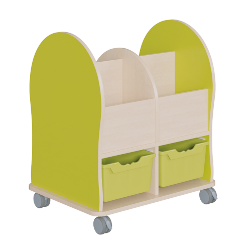 Bücherwagen Leseratte Midi H/T: 86x55 cm, farbige gerundete Seiten, Fächer und ErgoTray-Kästen