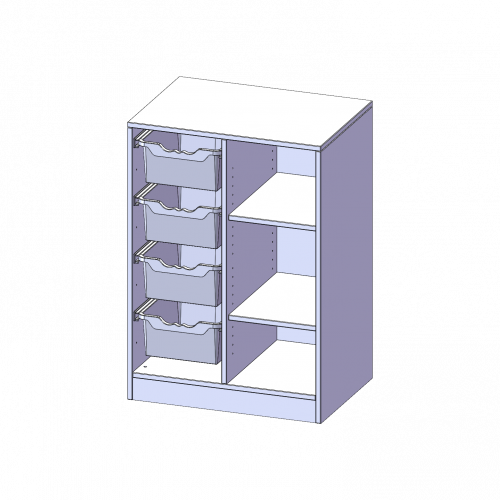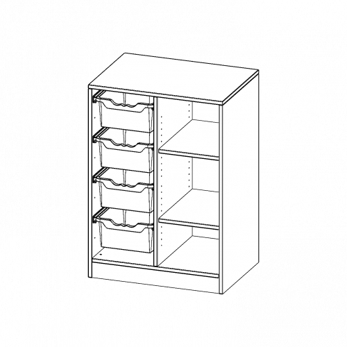 B/H/T: 70,3x100x50 cm, mit Sockel (81 mm), rechts 3 Fächer, links 4 hohe ErgoTray Boxen