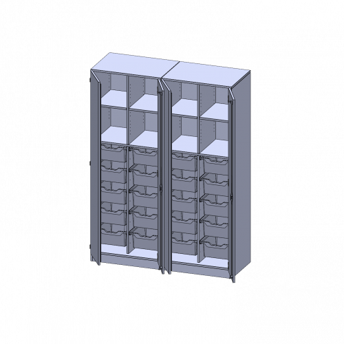 B/H/T: 140,6x190x50 cm, viertürig, zweiteilig, mit Sockel (81 mm), mit 2 Mittelwänden, mit 20 hohen ErgoTray Boxen