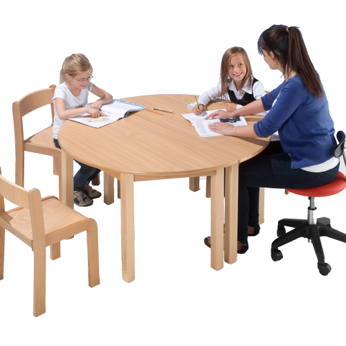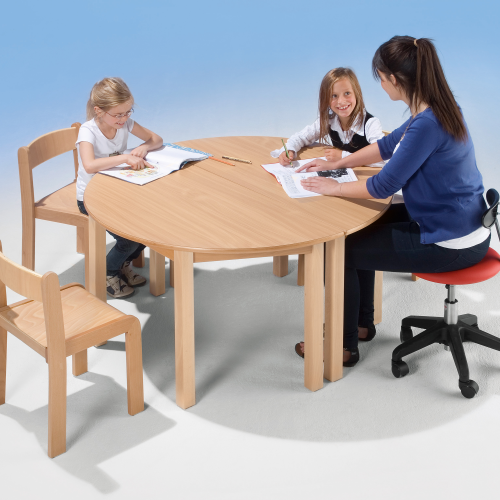 Halbrunder Kindergartentisch mit Massivholzgestell
