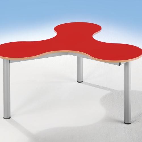 Kleeblatt Dreiertisch Schülertisch mit Melaminplatte, fahrbar