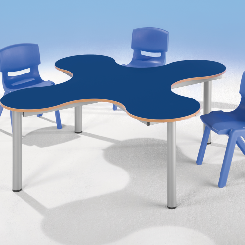 Kleeblatt Vierertisch Schultisch mit Melaminplatte, fahrbar