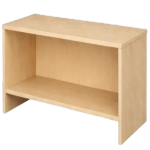 Dieses schlichte und stabile Sockelnischen-Regal wird in verschiedenen Höhen und Breiten gefertigt, natürlich besitzt es oberhalb der Nische immer eine Sichtrückwand. Statt der allgemein üblichen Sockelhöhe ist der Unterboden zur Ausbildung einer Nische nach oben versetzt und kann für das Verstauen auf Fußbodenebene genutzt; vorzugsweise ist die Nische für das Unterschieben von entsprechend breiten Rollkästen konzipiert.