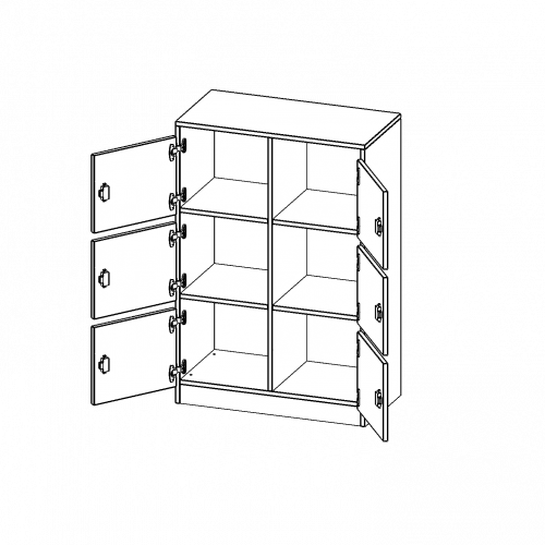 Alle Schließfach Schränke werden aus melaminharzbeschichteter E1-Feinspanplatte gefertigt, die FSC zertifiziert und formaldehydfrei sind. Als Kanten verwenden wir besonders robuste 2 mm starke ABS Kanten, die unter hoher Temperatur fest verleimt werden. Bitte wählen Sie Ihr Wunschdekor aus unserer Dekorpalette aus. Die Einlegeböden sind im Raster von 32 mm verstellbar. Unsere hochwertigen Bodenträger verfügen über einen "Ausziehstop", so wird verhindert, dass Böden mit Inhalt darauf aus dem Regal oder Schrank rutschen können. Die Türen lassen sich dank 270° offnender Scharniere an den Korpus anlegen. Sie sind mit einem Schloss verschließbar. An den Türen befindet sich eine Staublippe.