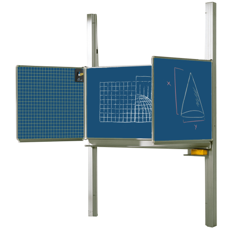 Desweiteren eignet sich die Pylonen-Klappschiebetafel mit der emaillierten Oberfläche für jede Art von Unterrichtspräsentation.
