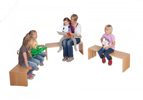 Das praktische Sitzbank-Set aus unterschiedlich großen Einzelbänken ermöglicht eine platzsparende, untereinander schiebbare Lagerung. Die stabilen Wangenbänke der verschiedenen Höhen lassen sich bequem zur Nutzung untereinander hervorziehen bzw. zum Abstellen problemlos übereinander schieben. Das Dekor des Sitzbank-Sets ist wählbar. Die Stapelbänke halten für Kinder unterschiedlichen Alters einen passenden Sitzplatz bereit, daher sind sie besonders für altersgemischte Gruppen geeignet.