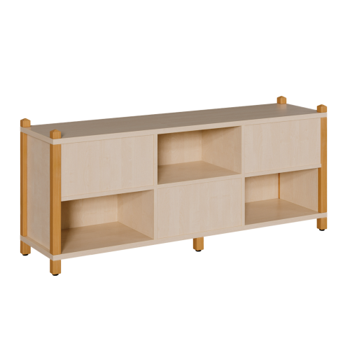 Das Regal besitzt in 2 Reihen insgesamt 6 Fächer.