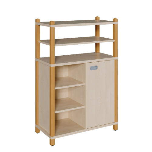 Stollen-Schrank mit einseitiger Tür und 3 offenen Fächern, offener Regalaufsatz