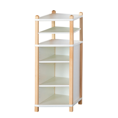 Praktisch, wenn sich die Tiefe einer Schrankwand fließend ändern soll: das Regal verringert die Tiefe von 60 cm auf 40 cm. So ergibt sich auf platzsparenden 40 cm Breite ein gelungenerer Übergang zwischen unterschiedlich tiefen Möbeln. Das Regal der Höhe 120 cm hat wie die benachbarten Möbel unten 2 Einlegeböden und im offenen Bereich oben einen 3. Einlegeboden, die auf verstellbaren Bodenträgern liegen und verschieden hohe Fächer einstellen lassen. Die Korpusteile bestehen aus 19 bzw. 25 mm dicker E 1-Feinspanplatte mit einer dekorativen Melaminharzbeschichtung, alle Kanten sind mit 2 mm - ABS-Sicherheitskanten ausgeführt. Die Stollen bestehen aus sehr stabilem Buche-Massivholz und können ja nach Gestaltungswünschen in farbiger oder auch mit transparenter Lackierung geliefert werden. Auch das Dekor der Korpusteile kann ausgewählt werden. Das Stollenregal wird für den Ausgleich in 2 verschiedenen Anstellvarianten angeboten:
