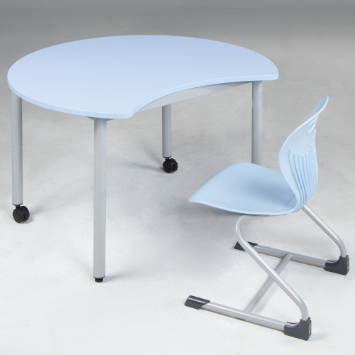 Produktinformationen "Tisch PAC mit Körperausschnitt, fahrbarer Schultisch mit Vollkernplatte PowerSurf Durchmesser 100 cm, Tischhöhe wählbar"
