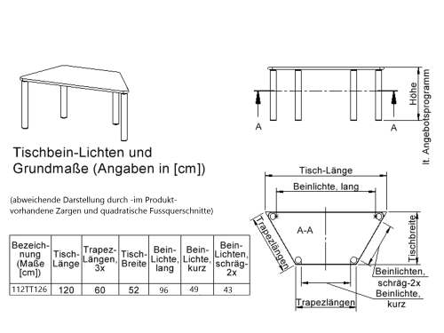 Produktinformationen "Trapeztisch mit Massivholzgestell und Schichtstoffplatte Lieferbar in 3 Tischgrößen und 7 wählbaren Tischhöhen"