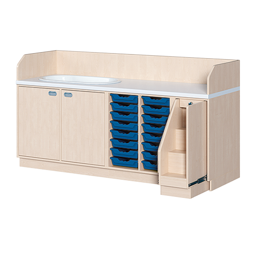 Produktinformationen "Wickelkommode, dreireihig zuzüglich Badewanne B/H: 213x113 cm, Ausziehbarer Aufstieg, 16 Boxen und Badewanne"