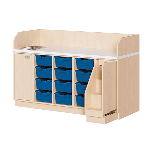 Produktinformationen "Wickelkommode, vierreihig zuzüglich Waschbecken B/H: 179x113 cm, Ausziehbarer Aufstieg, 12 Boxen und Waschbecken"