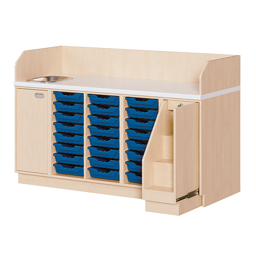Produktinformationen "Wickelkommode, vierreihig zuzüglich Waschbecken B/H: 179x113 cm, Ausziehbarer Aufstieg, 24 Boxen und Waschbecken"